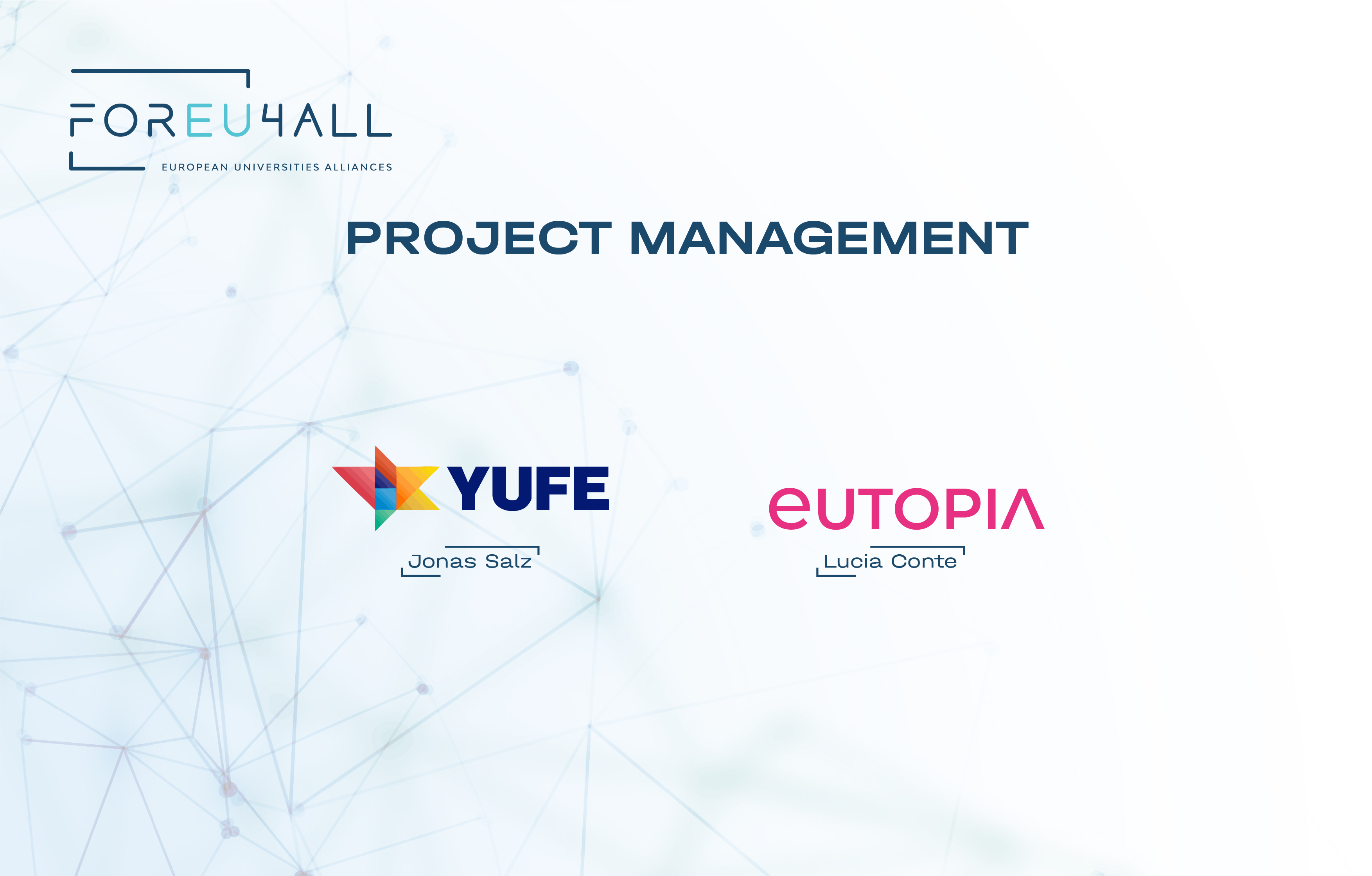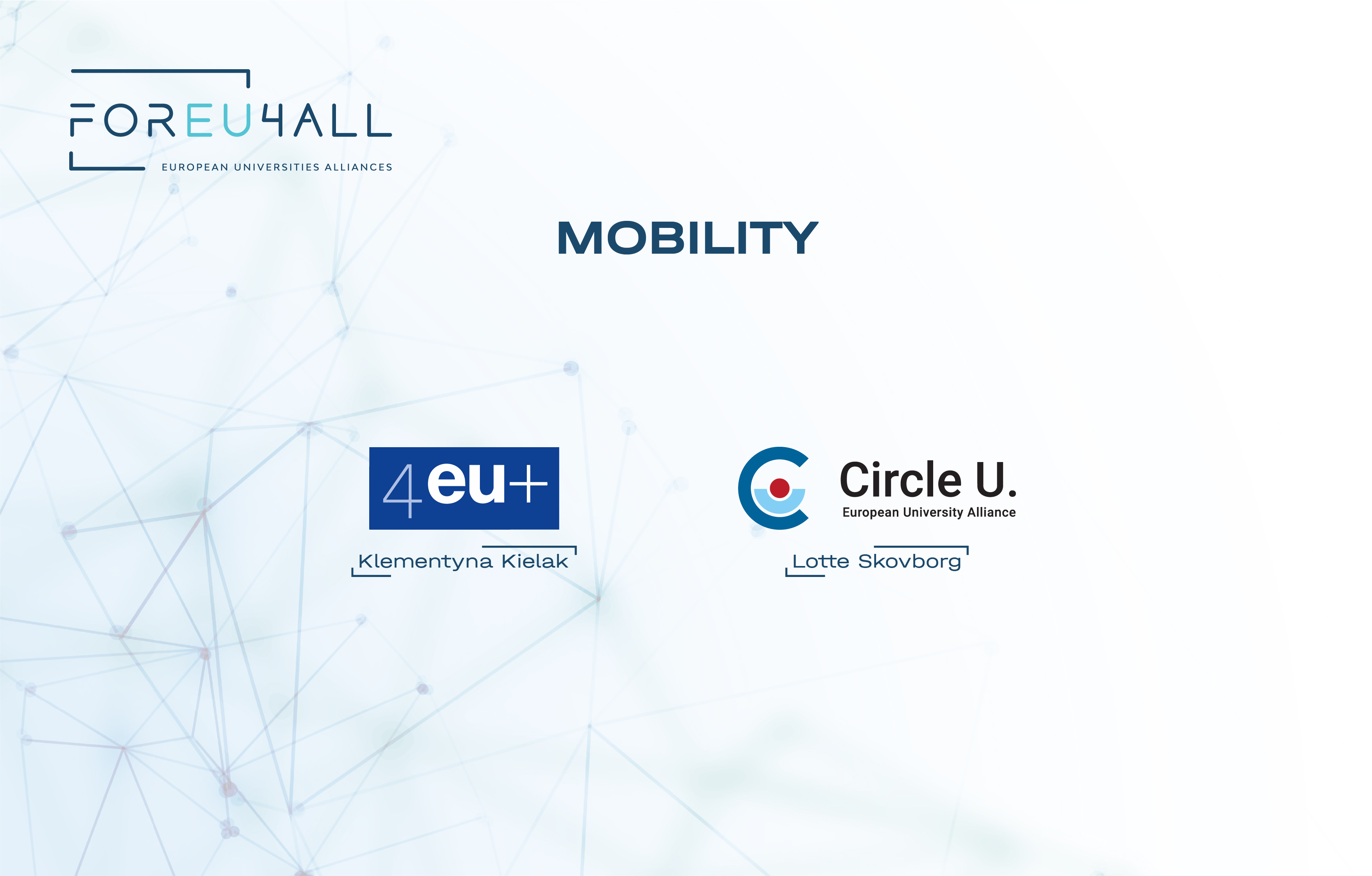 FOREU4ALL PM serves as a collaborative platform for networking and coordination among project managers at the coordinator level across the European University Alliances. Its mission is to pioneer the transformation of EU reporting within the EUI framework, promote peer learning to establish common standards and develop practical guidelines, facilitate knowledge transfer within Alliances and across topical groups, and strengthen communication and cooperation with the EACEA.